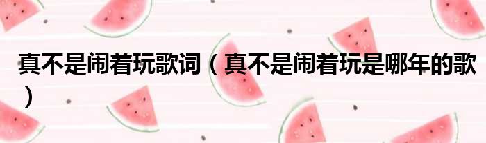 大家好,今天小六子来为大家解答以下的问题,关于真不是闹着玩歌词,真不是闹着玩是哪年的歌这个很多人还不知道,现在让我们一起来看看吧!