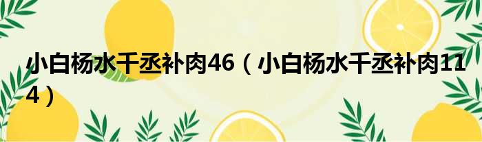 大家好,今天小六子来为大家解答以下的问题,关于小白杨水千丞补肉46,小白杨水千丞补肉114这个很多人还不知道,现在让我们一起来看看吧!