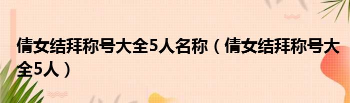 大家好,今天小六子来为大家解答以下的问题,关于倩女结拜称号大全5人名称,倩女结拜称号大全5人这个很多人还不知道,现在让我们一起来看看吧!