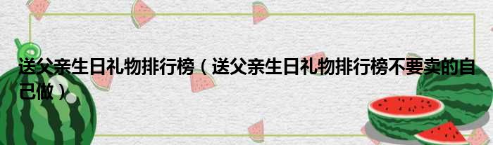 大家好,今天小六子来为大家解答以下的问题,关于送父亲生日礼物排行榜,送父亲生日礼物排行榜不要卖的自己做这个很多人还不知道,现在让我们一起来看看吧!