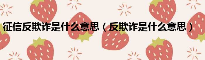 大家好,今天小六子来为大家解答以下的问题,关于征信反欺诈是什么意思,反欺诈是什么意思这个很多人还不知道,现在让我们一起来看看吧!