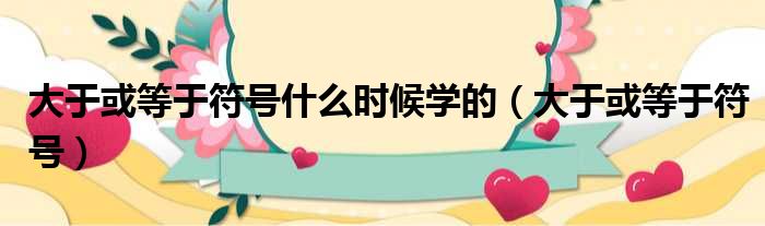 大于或等于符号什么时候学的 大于或等于符号 网络整理 经验 2023-06-14 16:29:47 大家好,今天小六子来为大家解答以下的问题,关于大于或等于符号什么时候学的,大于或等于符号这个很多人还不知道,现在让我们一起来看看吧!1、≥。本文分享完毕,希望对你有所帮助。 声明:免责声明:本文来源网友投稿及网络整合仅代表文章作者的个人观点,与本站无关。其原创性、真实性以及文中陈述文字和内容未经本站证实,对本文以及其中全部或者部分内容文字的真实性、完整性和原创性本站不作任何保证或承诺,请读者仅作参考,并自行核实相关内容。投诉邮箱:1765130767@qq.com。 本文地址:https://www.anfu123.com/jingyan/104141.html
