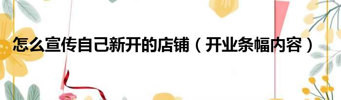 大家好,今天小六子来为大家解答以下的问题,关于怎么宣传自己新开的店铺,开业条幅内容这个很多人还不知道,现在让我们一起来看看吧!