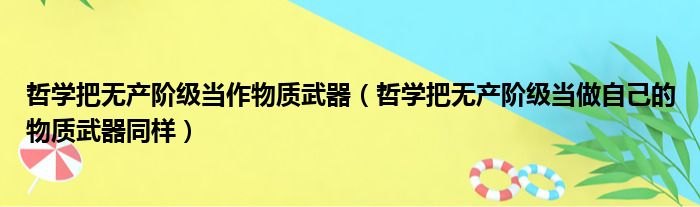 大家好,今天小六子来为大家解答以下的问题,关于哲学把无产阶级当作物质武器,哲学把无产阶级当做自己的物质武器同样这个很多人还不知道,现在让我们一起来看看吧!