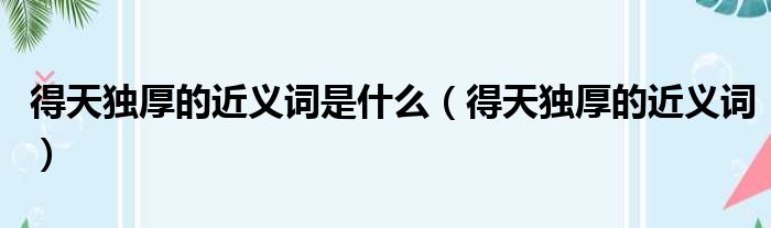 得天独厚的近义词是什么 得天独厚的近义词 网络整理 经验 2023-06-14 16:30:19 大家好,今天小六子来为大家解答以下的问题,关于得天独厚的近义词是什么,得天独厚的近义词这个很多人还不知道,现在让我们一起来看看吧!1、得天独厚————独一无二得天独厚————独具优势。本文分享完毕,希望对你有所帮助。 声明:免责声明:本文来源网友投稿及网络整合仅代表文章作者的个人观点,与本站无关。其原创性、真实性以及文中陈述文字和内容未经本站证实,对本文以及其中全部或者部分内容文字的真实性、完整性和原创性本站不作任何保证或承诺,请读者仅作参考,并自行核实相关内容。投诉邮箱:1765130767@qq.com。 本文地址:https://www.anfu123.com/jingyan/104339.html