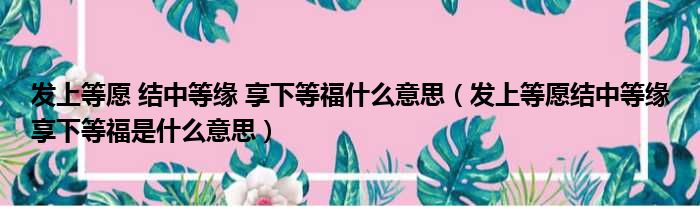 大家好,今天小六子来为大家解答以下的问题,关于发上等愿 结中等缘 享下等福什么意思,发上等愿结中等缘享下等福是什么意思这个很多人还不知道,现在让我们一起来看看吧!