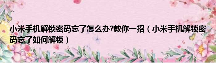 大家好,今天小六子来为大家解答以下的问题,关于小米手机解锁密码忘了怎么办?教你一招,小米手机解锁密码忘了如何解锁这个很多人还不知道,现在让我们一起来看看吧!