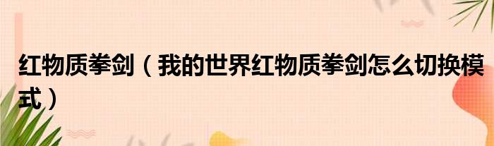大家好,今天小六子来为大家解答以下的问题,关于红物质拳剑,我的世界红物质拳剑怎么切换模式这个很多人还不知道,现在让我们一起来看看吧!