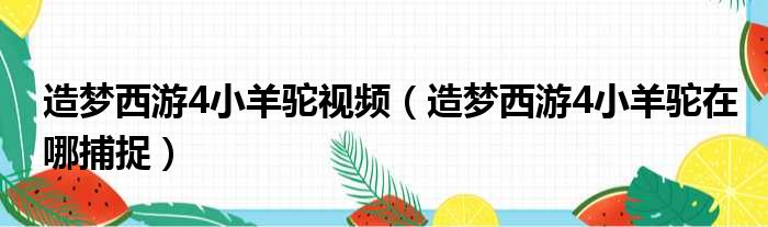 大家好,今天小六子来为大家解答以下的问题,关于造梦西游4小羊驼视频,造梦西游4小羊驼在哪捕捉这个很多人还不知道,现在让我们一起来看看吧!