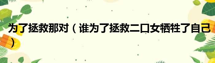 大家好,今天小六子来为大家解答以下的问题,关于为了拯救那对,谁为了拯救二口女牺牲了自己这个很多人还不知道,现在让我们一起来看看吧!