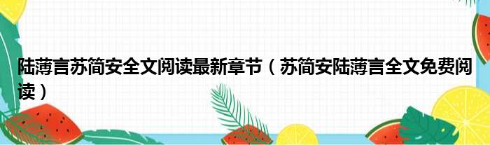 大家好,今天小六子来为大家解答以下的问题,关于陆薄言苏简安全文阅读最新章节,苏简安陆薄言全文免费阅读这个很多人还不知道,现在让我们一起来看看吧!