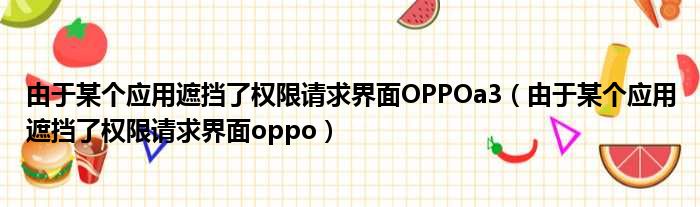 大家好,今天小六子来为大家解答以下的问题,关于由于某个应用遮挡了权限请求界面OPPOa3,由于某个应用遮挡了权限请求界面oppo这个很多人还不知道,现在让我们一起来看看吧!