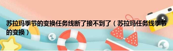 大家好,今天小六子来为大家解答以下的问题,关于苏拉玛季节的变换任务线断了接不到了,苏拉玛任务线季节的变换这个很多人还不知道,现在让我们一起来看看吧!