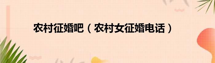 大家好,今天小六子来为大家解答以下的问题,关于农村征婚吧,农村女征婚电话这个很多人还不知道,现在让我们一起来看看吧!