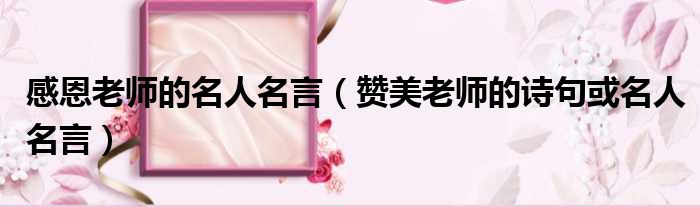 大家好,今天小六子来为大家解答以下的问题,关于感恩老师的名人名言,赞美老师的诗句或名人名言这个很多人还不知道,现在让我们一起来看看吧!