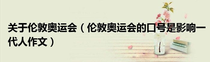 大家好,今天小六子来为大家解答以下的问题,关于关于伦敦奥运会,伦敦奥运会的口号是影响一代人作文这个很多人还不知道,现在让我们一起来看看吧!
