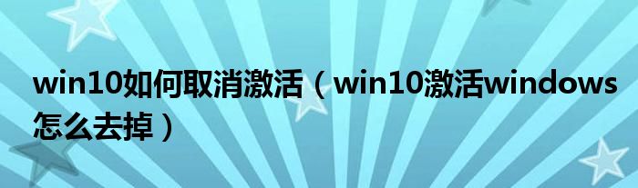 大家好,今天小六子来为大家解答以下的问题,关于win10如何取消激活,win10激活windows怎么去掉这个很多人还不知道,现在让我们一起来看看吧!