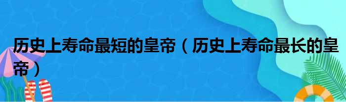 大家好,今天小六子来为大家解答以下的问题,关于历史上寿命最短的皇帝,历史上寿命最长的皇帝这个很多人还不知道,现在让我们一起来看看吧!