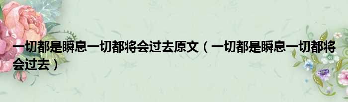 大家好,今天小六子来为大家解答以下的问题,关于一切都是瞬息一切都将会过去原文,一切都是瞬息一切都将会过去这个很多人还不知道,现在让我们一起来看看吧!