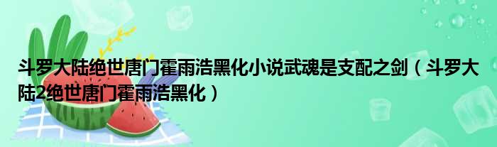 大家好,今天小六子来为大家解答以下的问题,关于斗罗大陆绝世唐门霍雨浩黑化小说武魂是支配之剑,斗罗大陆2绝世唐门霍雨浩黑化这个很多人还不知道,现在让我们一起来看看吧!