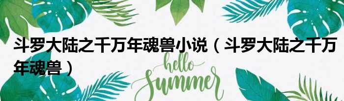 大家好,今天小六子来为大家解答以下的问题,关于斗罗大陆之千万年魂兽小说,斗罗大陆之千万年魂兽这个很多人还不知道,现在让我们一起来看看吧!