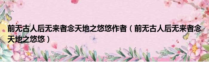 大家好,今天小六子来为大家解答以下的问题,关于前无古人后无来者念天地之悠悠作者,前无古人后无来者念天地之悠悠这个很多人还不知道,现在让我们一起来看看吧!