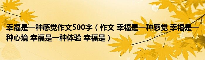 大家好,今天小六子来为大家解答以下的问题,关于幸福是一种感觉作文500字,作文 幸福是一种感觉 幸福是一种心境 幸福是一种体验 幸福是这个很多人还不知道,现在让我们一起来看看吧!