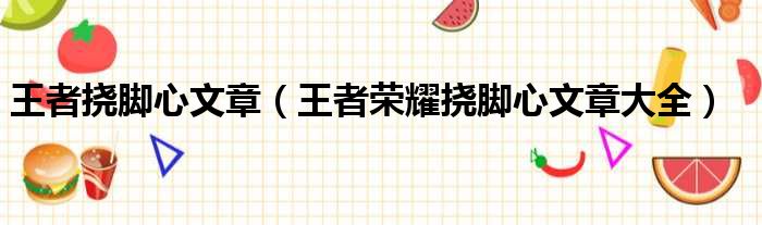 大家好,今天小六子来为大家解答以下的问题,关于王者挠脚心文章,王者荣耀挠脚心文章大全这个很多人还不知道,现在让我们一起来看看吧!