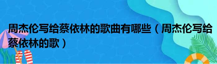 大家好,今天小六子来为大家解答以下的问题,关于周杰伦写给蔡依林的歌曲有哪些,周杰伦写给蔡依林的歌这个很多人还不知道,现在让我们一起来看看吧!