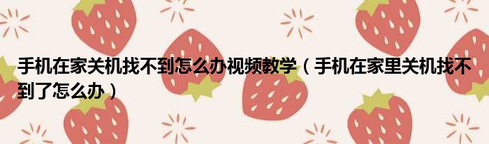 大家好,今天小六子来为大家解答以下的问题,关于手机在家关机找不到怎么办视频教学,手机在家里关机找不到了怎么办这个很多人还不知道,现在让我们一起来看看吧!