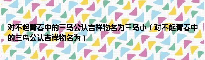对不起青春中的三岛公认吉祥物名为三岛小 对不起青春中的三岛公认吉祥物名为 网络整理 经验 2023-06-14 16:37:28 大家好,今天小六子来为大家解答以下的问题,关于对不起青春中的三岛公认吉祥物名为三岛小,对不起青春中的三岛公认吉祥物名为这个很多人还不知道,现在让我们一起来看看吧!1、《我爱我家》第18集葛优客串演出。本文分享完毕,希望对你有所帮助。 声明:免责声明:本文来源网友投稿及网络整合仅代表文章作者的个人观点,与本站无关。其原创性、真实性以及文中陈述文字和内容未经本站证实,对本文以及其中全部或者部分内容文字的真实性、完整性和原创性本站不作任何保证或承诺,请读者仅作参考,并自行核实相关内容。投诉邮箱:1765130767@qq.com。 本文地址:https://www.anfu123.com/jingyan/105092.html