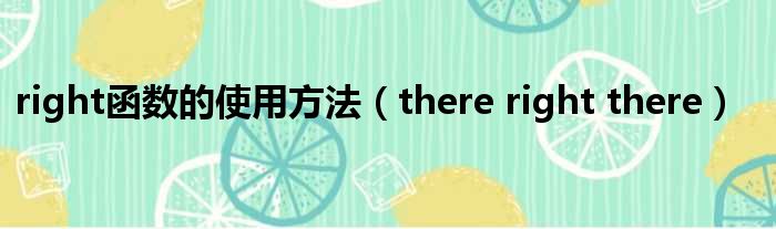 大家好,今天小六子来为大家解答以下的问题,关于right函数的使用方法,there right there这个很多人还不知道,现在让我们一起来看看吧!