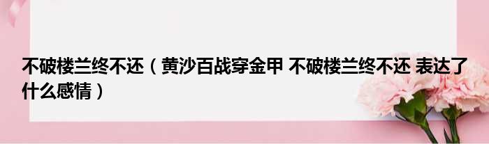 大家好,今天小六子来为大家解答以下的问题,关于不破楼兰终不还,黄沙百战穿金甲 不破楼兰终不还 表达了什么感情这个很多人还不知道,现在让我们一起来看看吧!