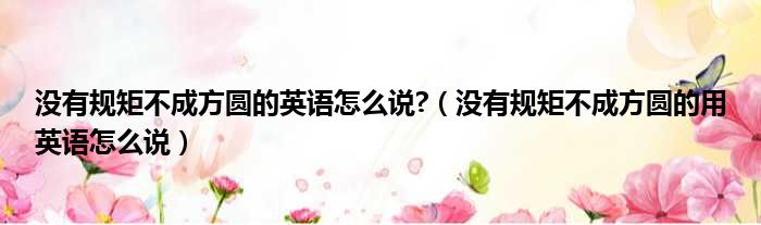 大家好,今天小六子来为大家解答以下的问题,关于没有规矩不成方圆的英语怎么说?,没有规矩不成方圆的用英语怎么说这个很多人还不知道,现在让我们一起来看看吧!
