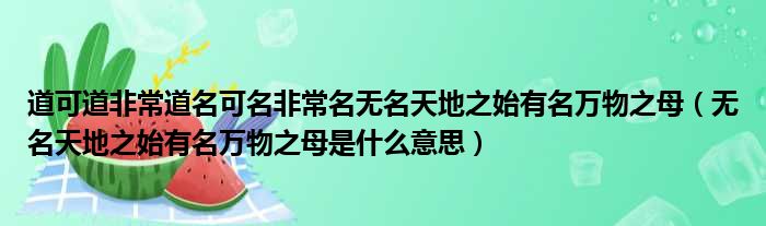 大家好,今天小六子来为大家解答以下的问题,关于道可道非常道名可名非常名无名天地之始有名万物之母,无名天地之始有名万物之母是什么意思这个很多人还不知道,现在让我们一起来看看吧!
