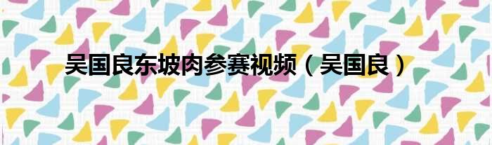 大家好,今天小六子来为大家解答以下的问题,关于吴国良东坡肉参赛视频,吴国良这个很多人还不知道,现在让我们一起来看看吧!