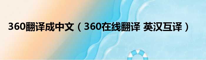 大家好,今天小六子来为大家解答以下的问题,关于360翻译成中文,360在线翻译 英汉互译这个很多人还不知道,现在让我们一起来看看吧!