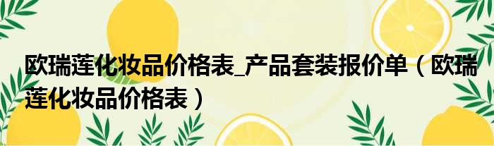 大家好,今天小六子来为大家解答以下的问题,关于欧瑞莲化妆品价格表_产品套装报价单,欧瑞莲化妆品价格表这个很多人还不知道,现在让我们一起来看看吧!