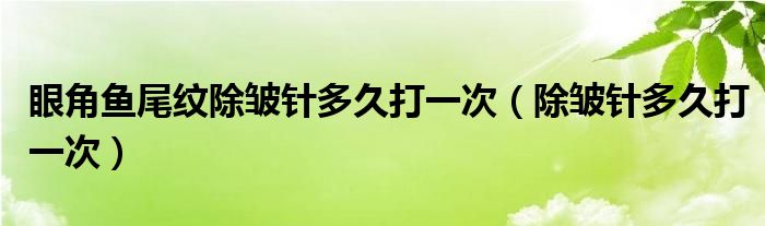 大家好,今天小六子来为大家解答以下的问题,关于眼角鱼尾纹除皱针多久打一次,除皱针多久打一次这个很多人还不知道,现在让我们一起来看看吧!