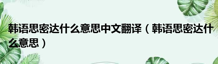 韩语思密达什么意思中文翻译 韩语思密达什么意思 网络整理 经验 2023-06-14 16:39:19 大家好,今天小六子来为大家解答以下的问题,关于韩语思密达什么意思中文翻译,韩语思密达什么意思这个很多人还不知道,现在让我们一起来看看吧!1、알겠습니다“我知道了”的意思。本文分享完毕,希望对你有所帮助。 声明:免责声明:本文来源网友投稿及网络整合仅代表文章作者的个人观点,与本站无关。其原创性、真实性以及文中陈述文字和内容未经本站证实,对本文以及其中全部或者部分内容文字的真实性、完整性和原创性本站不作任何保证或承诺,请读者仅作参考,并自行核实相关内容。投诉邮箱:1765130767@qq.com。 本文地址:https://www.anfu123.com/jingyan/105279.html
