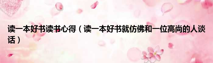 大家好,今天小六子来为大家解答以下的问题,关于读一本好书读书心得,读一本好书就仿佛和一位高尚的人谈话这个很多人还不知道,现在让我们一起来看看吧!