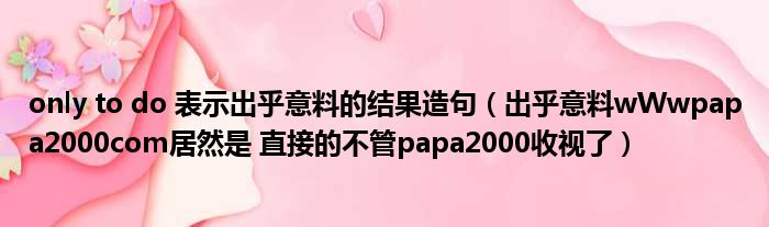大家好,今天小六子来为大家解答以下的问题,关于only to do 表示出乎意料的结果造句,出乎意料wWwpapa2000com居然是 直接的不管papa2000收视了这个很多人还不知道,现在让我们一起来看看吧!