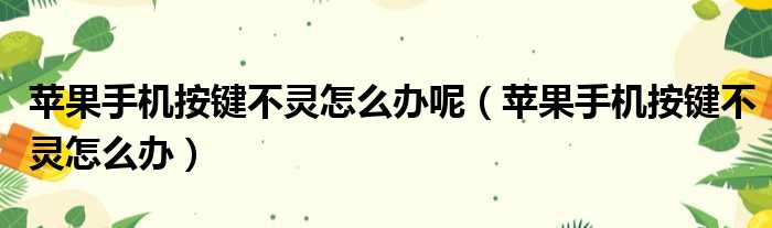 大家好,今天小六子来为大家解答以下的问题,关于苹果手机按键不灵怎么办呢,苹果手机按键不灵怎么办这个很多人还不知道,现在让我们一起来看看吧!