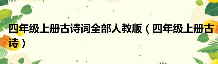 大家好,今天小六子来为大家解答以下的问题,关于四年级上册古诗词全部人教版,四年级上册古诗这个很多人还不知道,现在让我们一起来看看吧!