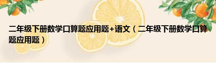 大家好,今天小六子来为大家解答以下的问题,关于二年级下册数学口算题应用题+语文,二年级下册数学口算题应用题这个很多人还不知道,现在让我们一起来看看吧!