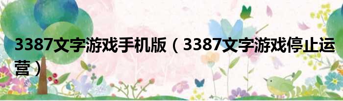 大家好,今天小六子来为大家解答以下的问题,关于3387文字游戏手机版,3387文字游戏停止运营这个很多人还不知道,现在让我们一起来看看吧!