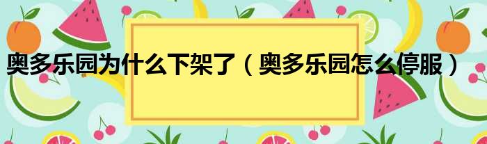 大家好,今天小六子来为大家解答以下的问题,关于奥多乐园为什么下架了,奥多乐园怎么停服这个很多人还不知道,现在让我们一起来看看吧!