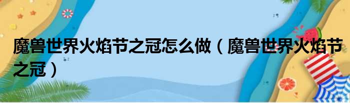 大家好,今天小六子来为大家解答以下的问题,关于魔兽世界火焰节之冠怎么做,魔兽世界火焰节之冠这个很多人还不知道,现在让我们一起来看看吧!