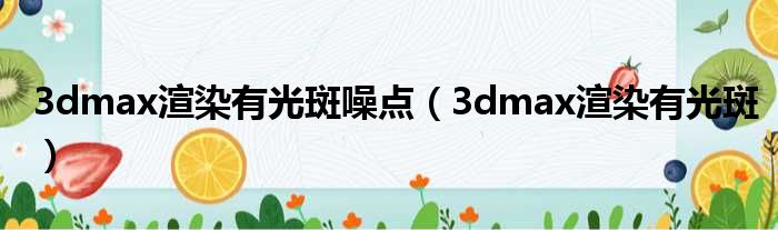 大家好,今天小六子来为大家解答以下的问题,关于3dmax渲染有光斑噪点,3dmax渲染有光斑这个很多人还不知道,现在让我们一起来看看吧!