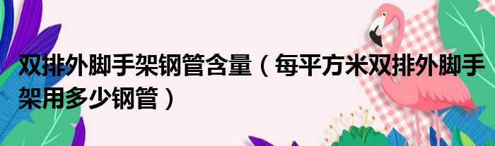 大家好,今天小六子来为大家解答以下的问题,关于双排外脚手架钢管含量,每平方米双排外脚手架用多少钢管这个很多人还不知道,现在让我们一起来看看吧!